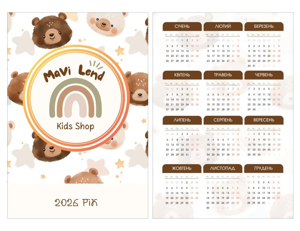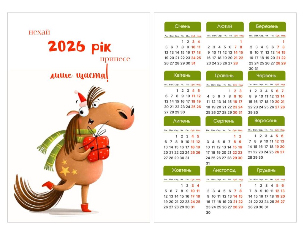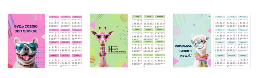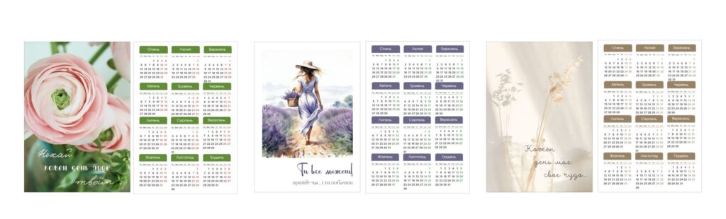 Для оформлення двохсторонніх календарів можна використати будь-який дизайн листівок
